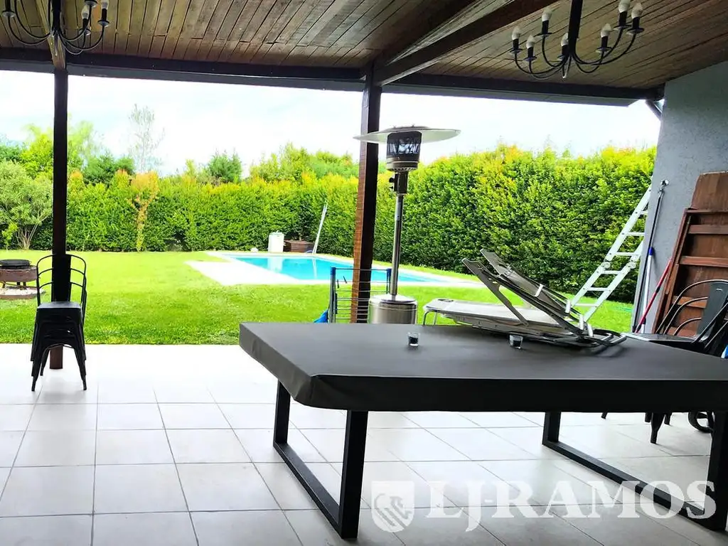 Amplia Galería cubierta con Parrilla, mesada y bacha. Pileta. Amplio jardín parquizado, con todo el cerco vivo crecido. Garage cubierto para 1 auto y al aire libre para 2 más, ambos con piso de adoquines. Jardín con orientación Nor-Oeste (de las 2 mejores). Sin Riego.