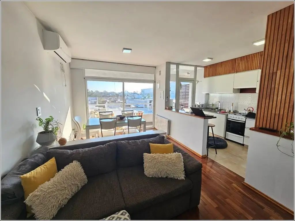 Departamento compuesto por ingreso a un amplio, luminoso living comedor con cocina semi integrada con barra desyunadora, esta totalmente equipada con sector para lavarropas, con salida a un balcon al frente con orientacion norte, un dormitorio con placar, un baño completo con ducha.