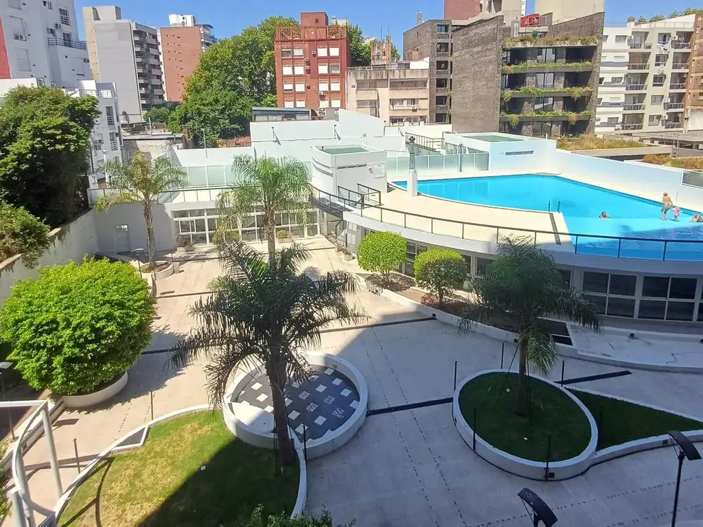 La unidad se encuentra en un tercer piso, con un balcón corrido orientado al este y una privilegiada vista al amplio patio central, donde se destacan espacios verdes parquizados, piscina, quincho con parrillero, SUM y gimnasio.