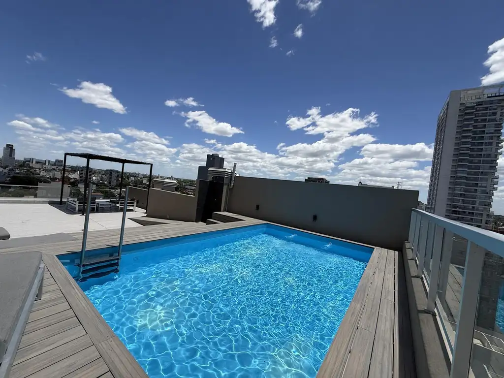 Entre las amenidades del edificio se destacan un gimnasio completamente equipado, piscina descubierta, solárium, SUM, quincho y parrilla techada, todos diseñados para mejorar la calidad de vida. La seguridad es prioritaria, con video cámaras y portones eléctricos, mientras que la comodidad está garantizada con aire acondicionado individual, calefacción central y ventanas de doble acristalamiento.