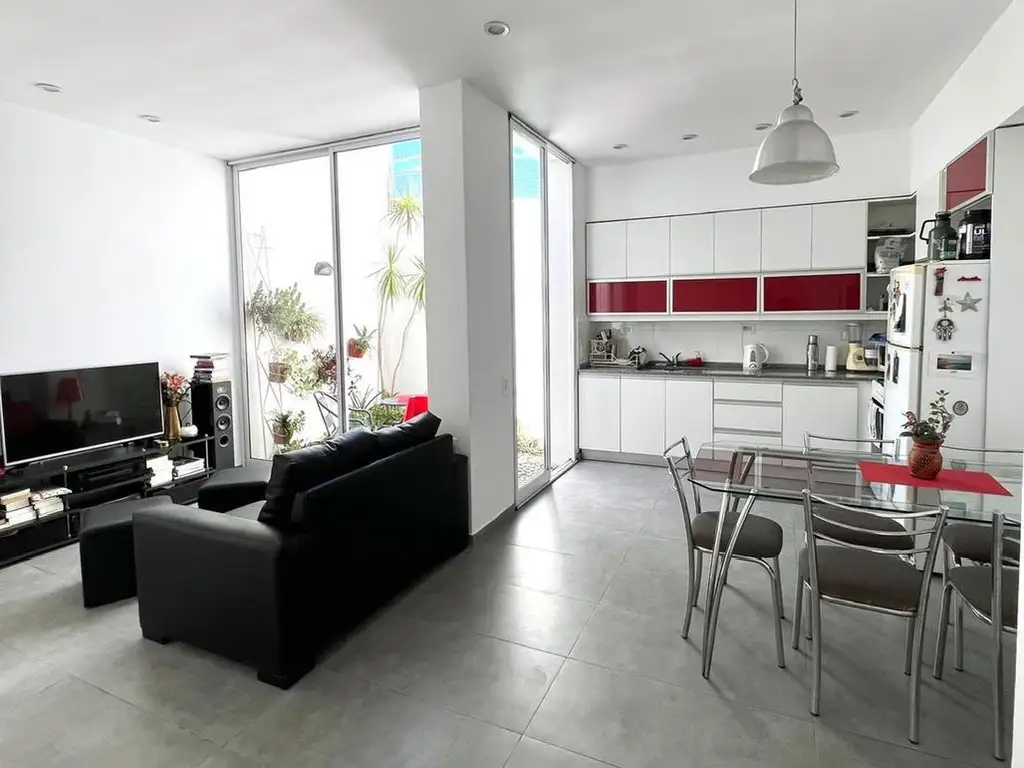 En planta baja se ingresa a un amplio living comedor con techos altos, excelente ventilación y gran ingreso de luz natural, conectado a una cocina semi integrada con mobiliario contemporáneo y buen espacio de guardado. Un toilette bajo escalera aporta comodidad diaria y un patio de invierno con ventanales de piso a techo se convierte en un espacio protagonista, aportando calidez y versatilidad como estar, jardín interno o sector de relax.