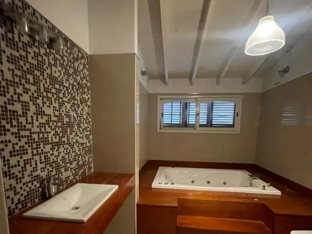 Planta baja acceso principal : Jardin delantero, amplio living, super luminoso, con hermoso piso en madera entarugada, cocina comedor completa, con artefacto de cocina, extractor de aire y muebles a medida en algarrobo, barra con copero, Baño completo y otro en suite , 3 dormitorios, cuenta tambien con una oficina de generosas dimensiones , y por escalera al primer piso encontramos un playroom o cuarto dormitorio, con un impactante baño con ducha escocesa e hidromasaje.