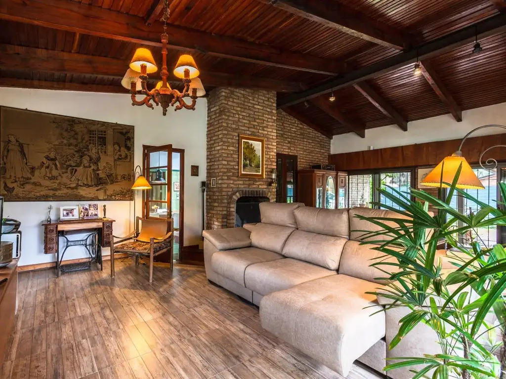Casa de estilo y materiales de excelente calidad desarrollada mayormente en PB con amplio living con hogar a leña, Cocina separada y pasillo distribuidor hacia el intimo que cuenta con dormitorio principal con baño completo en suite, dos dormitorios de generosas dimensiones y un baño completo. Escalera que conduce a la PA que cuenta con dos dormitorios mas y un baño completo.
