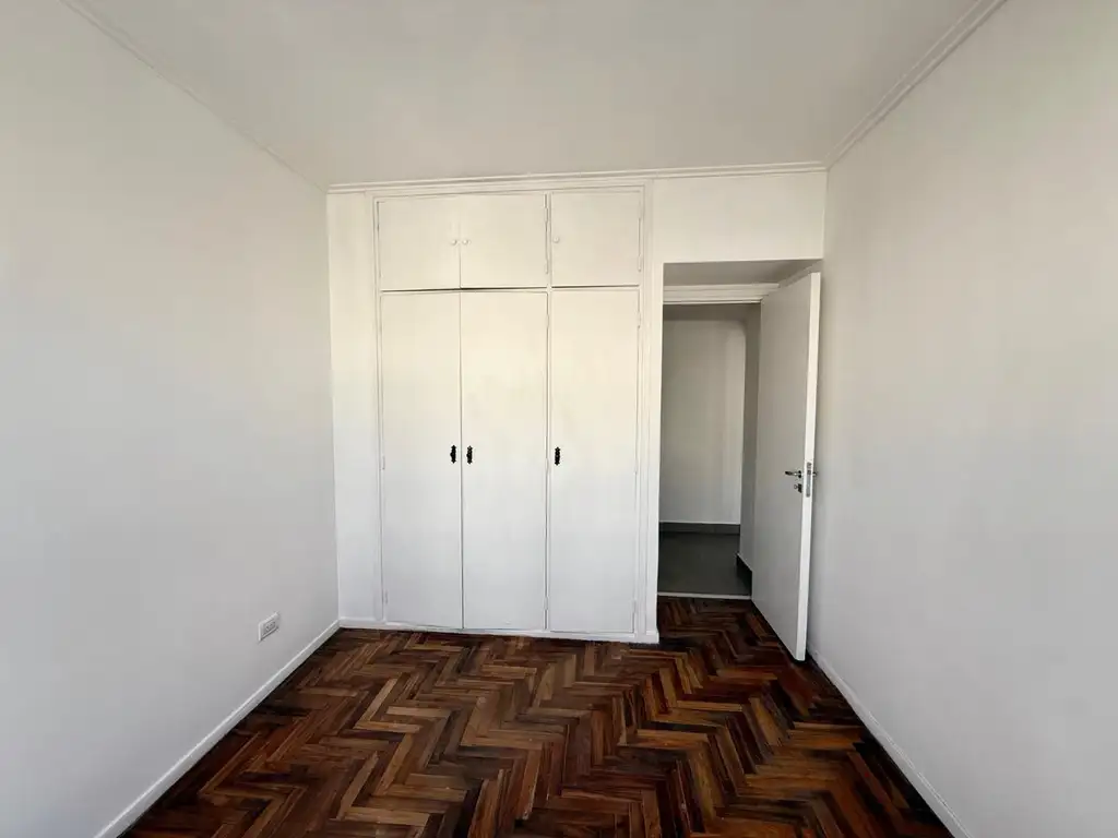 Dormitorio amplio con vista al frente y placard empotrado, piso parquet pulido y plastificado.