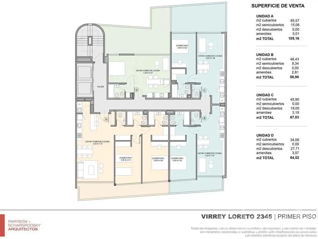 Todas las imágenes, planos, descripciones, y características indicadas son meramente referenciales e ilustrativas y podrán ser modificadas sin previo aviso. Las superficies indicadas son estimadas. Las superficies y medidas definitivas surgirán del plano de mensura final aprobado oportunamente por el GCBA. Las fechas de inicio de obra o posesión son estimadas, podrán ser reprogramadas por la Dirección de obra y dependerán a su vez de un proceso de aprobaciones municipales u otros organismos intervinientes. Los precios indicados podrán modificarse sin previo aviso. El interesado deberá realizar las verificaciones respectivas previamente a la realización de cualquier operación, requiriendo por sí o sus profesionales las copias necesarias de la documentación que corresponda.