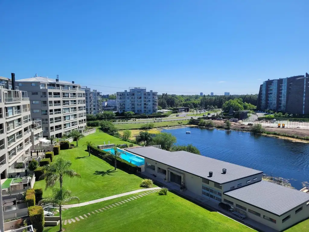 Al ingresar, no encontramos con un recibidor que da paso al Living Comedor, que se conecta al Balcon Terraza, que está equipado con parrilla, barra rebatible y una impresionante vista a un brazo del lago central.