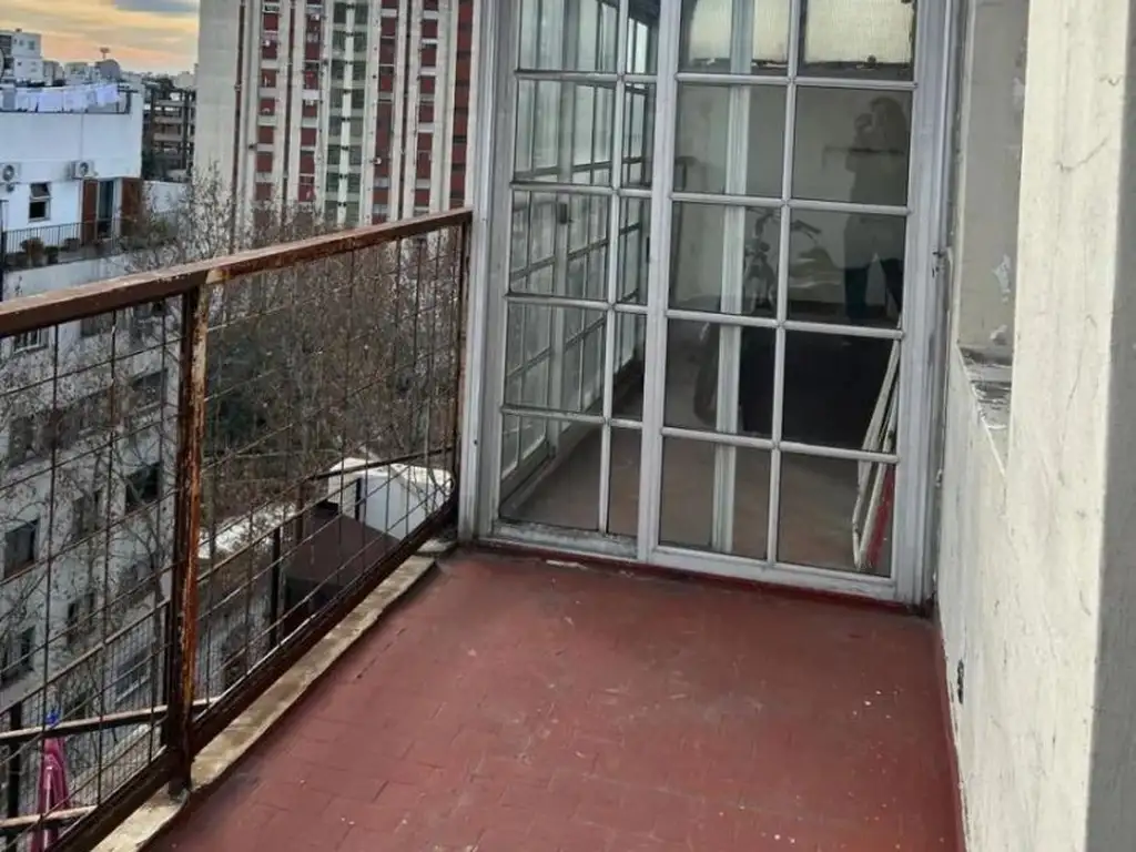 Apto crédito. Apto profesional. Departamento de 2 ambientes, al frente. 9º piso. Orientación oeste. Superficie total de 56m2, cubierta de 42m2 y descubierta de 14m2. Un dormitorio con placard, un baño. Living-comedor, cocina a gas. Balcón-terraza. Lavadero independiente. Hall de distribución con placard y ventana al exterior. Buen estado, luminoso. Pisos de parquet.