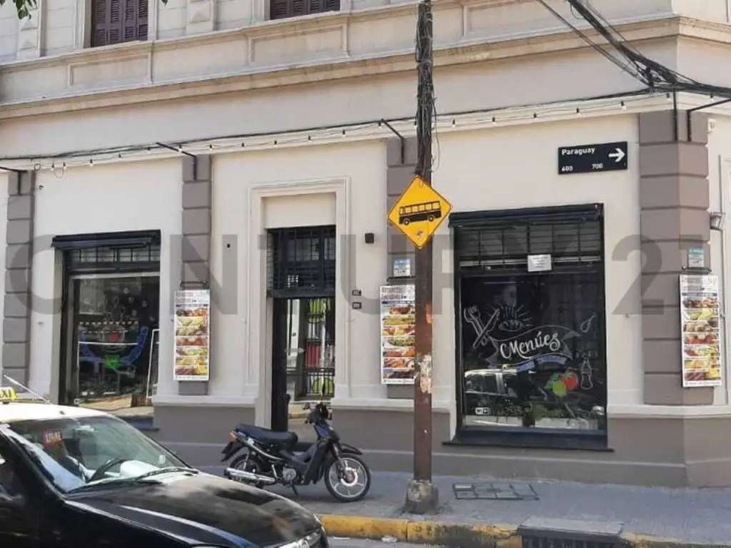 El local cuenta con triple acceso: entrada por Santa Fe, por Paraguay y por la ochava, lo que le da una visibilidad y circulación excepcionales. El inmueble se encuentra subdividido, permitiendo la posibilidad de operar dos comercios de manera simultánea.