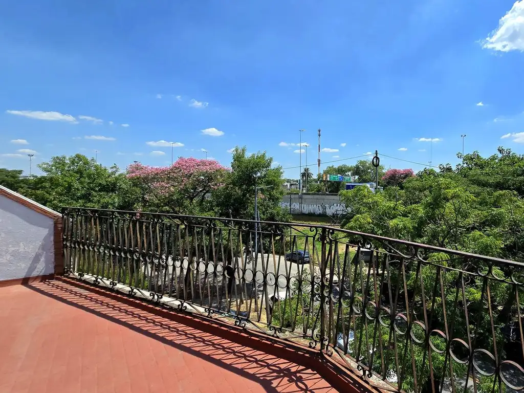 En PA, nos encontramos con un gran 4 ambientes desarrollado en un primer piso con 3 cómodos dormitorios, uno de ellos en suite. Un gran espacio de cocina con comedor diario integrado y salida a uno patio a nivel. El living comedor con salida al balcon del frente espacio el ambiente principal, que posee un gran hogar a gas. Otro baño completo abastece los dormitorios secundarios y las visitas. En el ultimo nivel tenemos el área de servicios, donde hallamos el lavadero, una dependencia y un baño de servicio junto con la maravillosa terraza de 100 m2 aproximadamente.