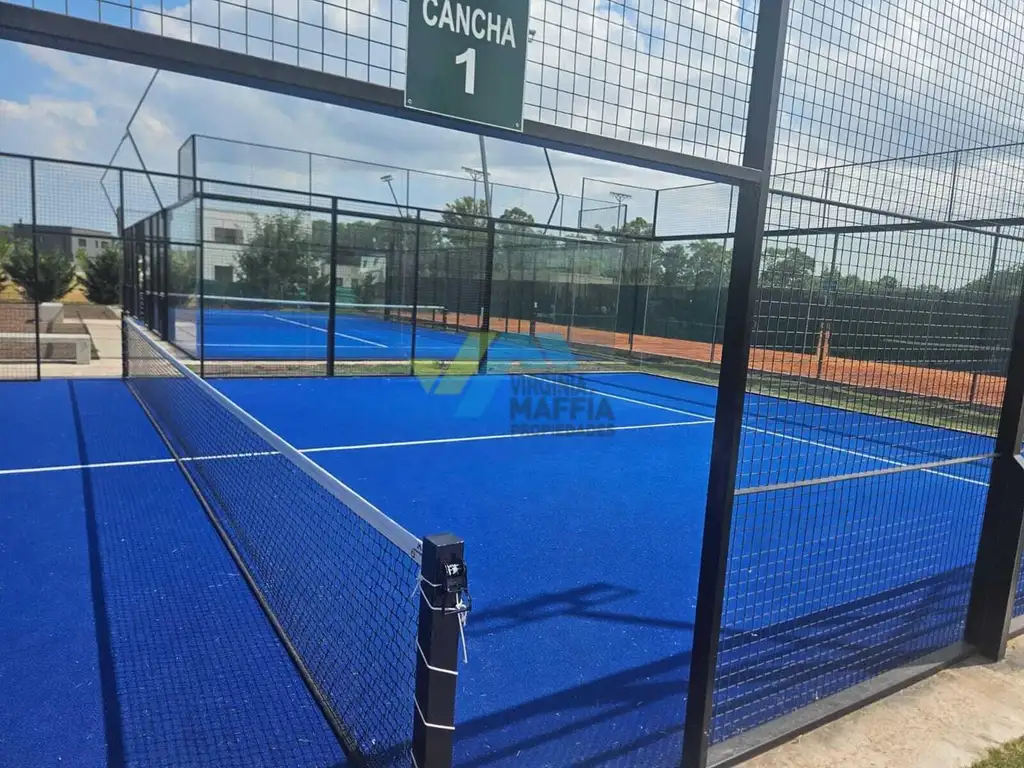 Area deportiva, con 2 canchas de tenis, 2 de padle y una de fútbol, SUM con parrilla