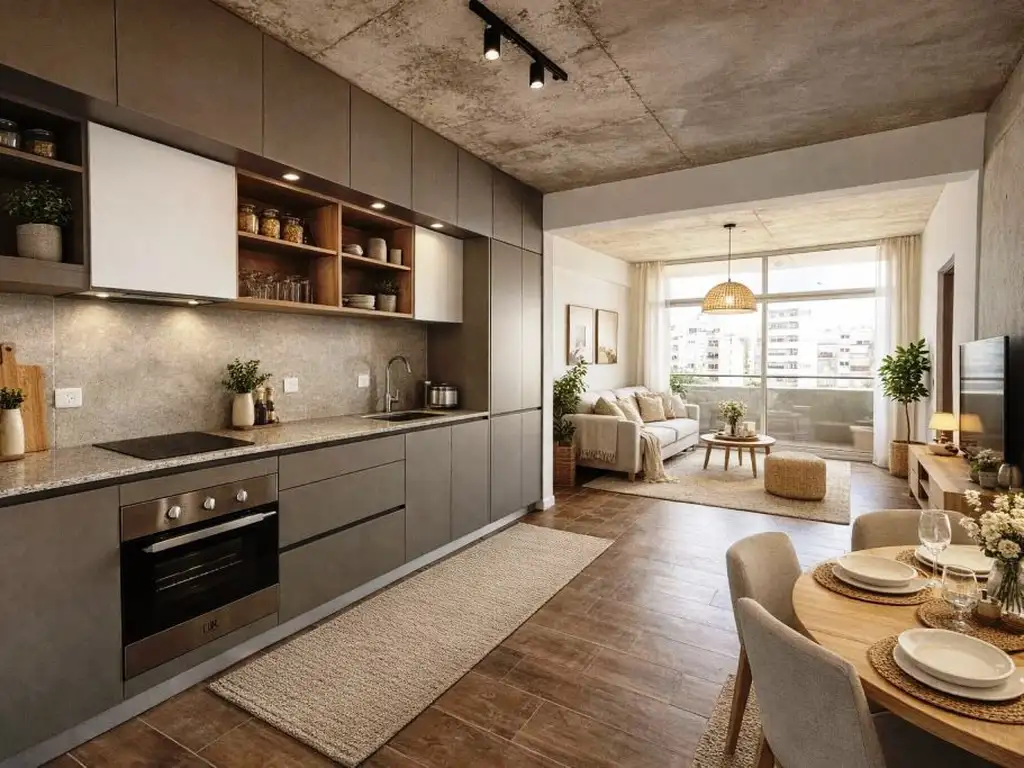 Cocina integrada, amplia, cómoda, ventilada y funcional. Cuenta con termotanque, para el agua caliente.