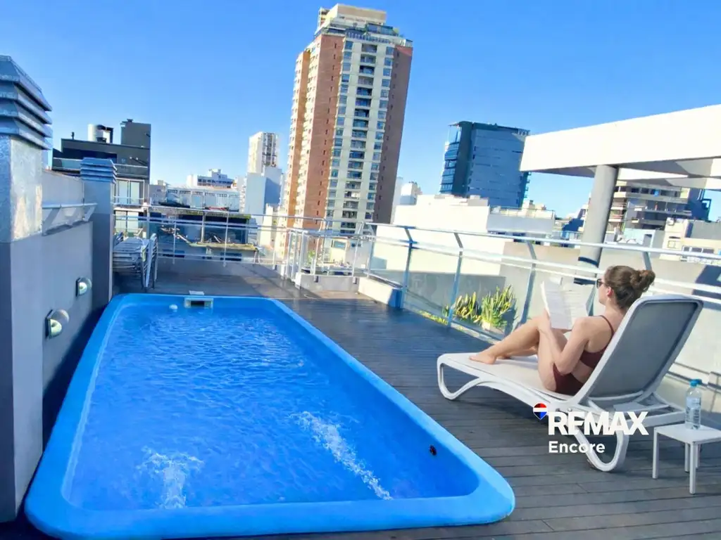 . Terraza SUM con toilette. Parrila. Mesa y sillas. Piscina. Solarium.