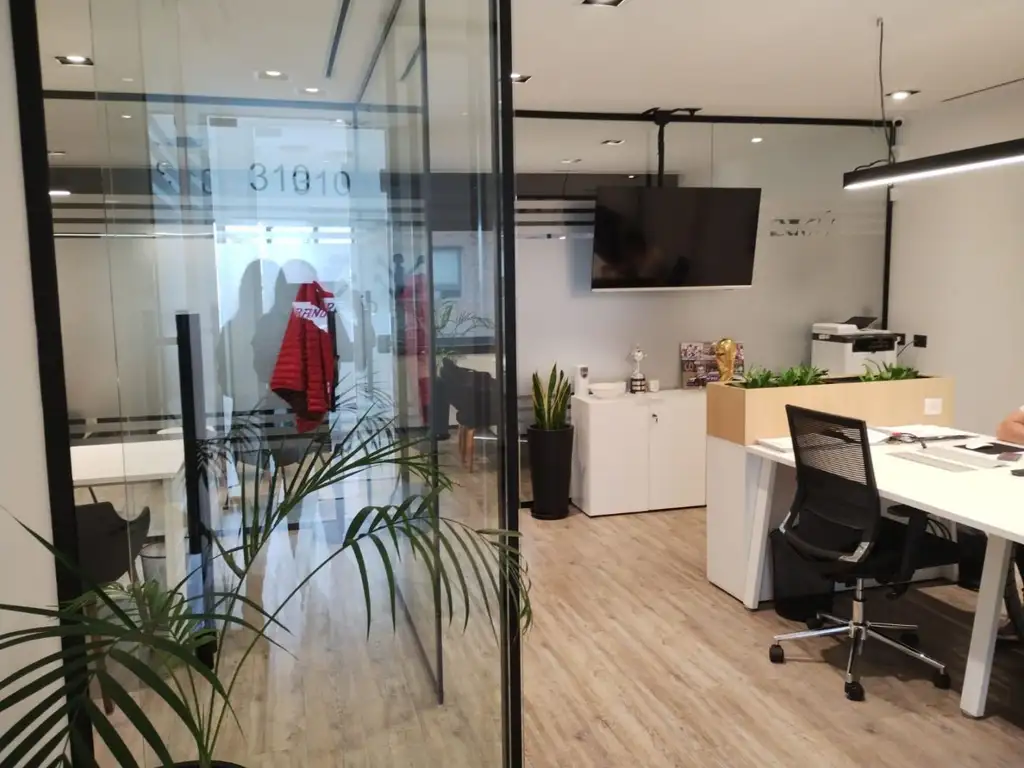 Excelente Oficina totalmente refaccionada, en el edificio PLAZA del Complejo OFFICE PARK, con una cochera cubierta. CON RENTA Tiene una Recepción, Sala Central de Trabajo, más 2 privados.