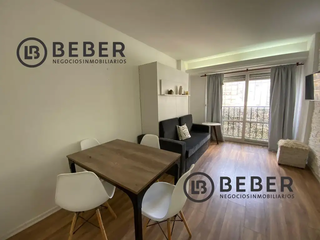 Amplio ambiente al contrafrente, con cama rebatible, luminoso, televisor, mesa y sillas, placard