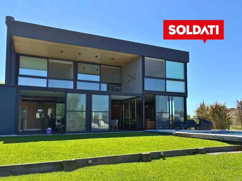 En el exterior se destaca la piscina con solárium en altura, un depósito de guardado debajo del solárium donde también se encuentran las maquinarias de pileta . deck con amarra y elevador de lancha,además de un espacio ideal para relajarse y disfrutar de la vista abierta al río.