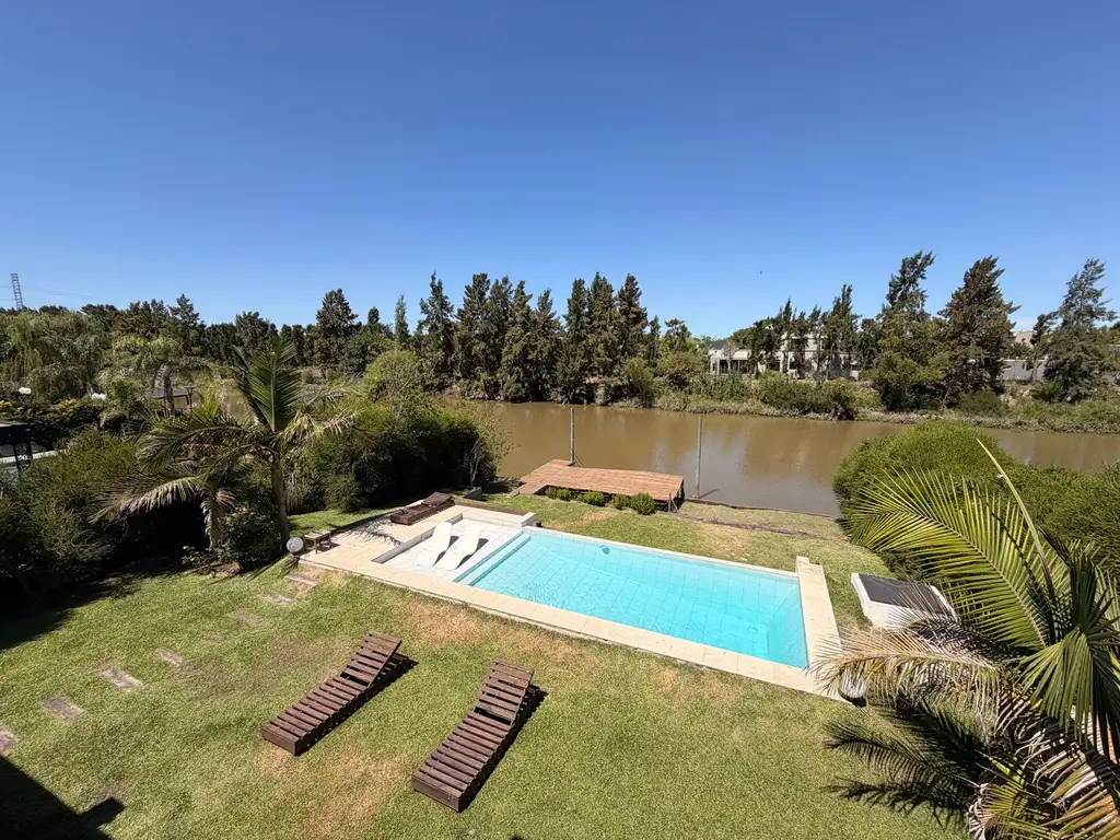 La propiedad cuenta con jardín parquizado con sistema de riego automático, piscina y salida directa al río con amarra propia, ideal para tener tu embarcación en el jardín de tu casa.