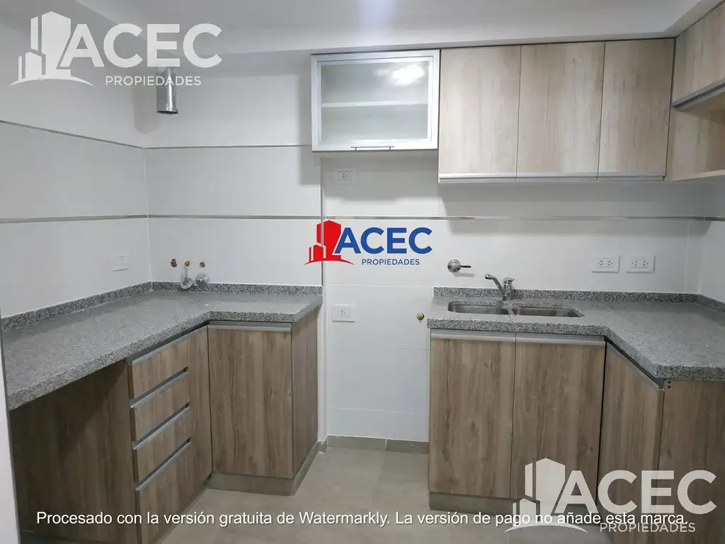 * Cocina semi integrada, equipada con alacenas y bajo mesada, con descarga para lavarropas