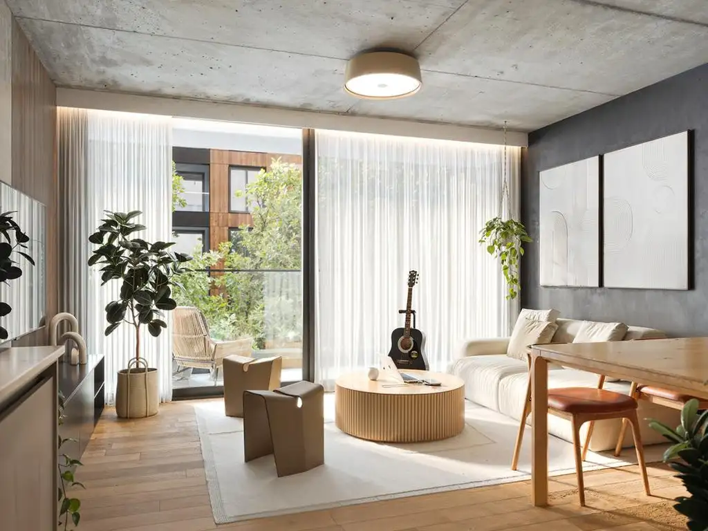 La unidad cuenta con un ambiente principal amplio y funcional, cocina integrada y baño completo. Su distribución permite organizar cómodamente el sector de living y descanso, con excelente ingreso de luz natural.