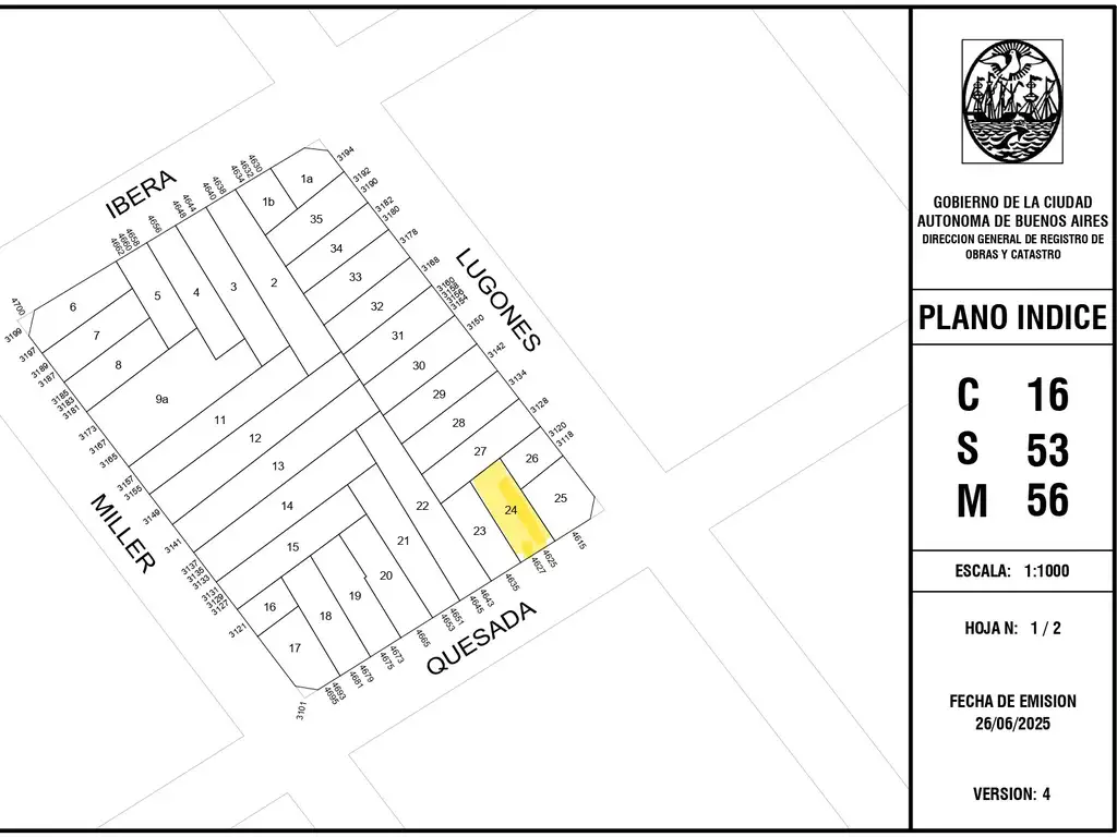 Oportunidad para desarrolladores e Inversores, lote en venta ubicado sobre Quesada 4625/27 entre lugones y Miller, en una zona residencial consolidada con gran proyección