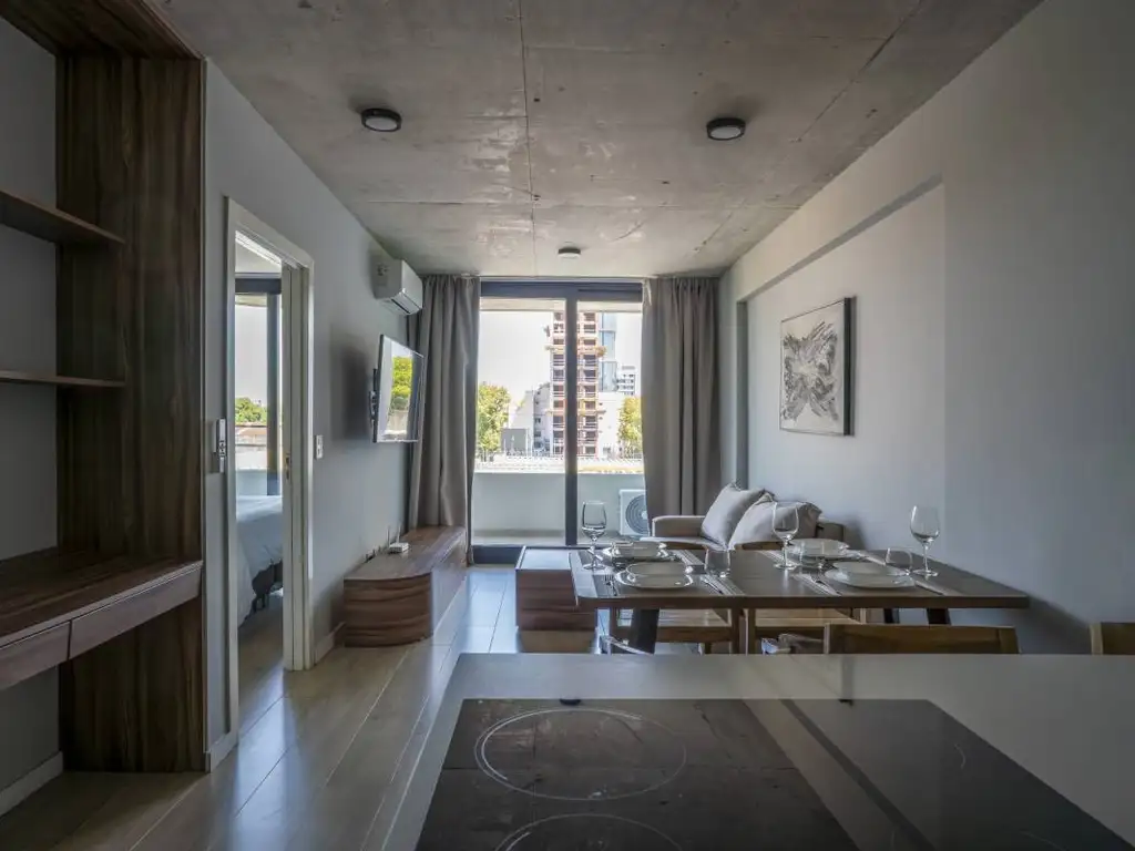 Unidad de dos ambientes con cuarto en suite, vestidor, toilette, living comedor con cocina integrada tipo americana y balcón aterrazado. Terminaciones de calidad como cerramientos DVH, grifería piazza, mampara de baño blindex, otros.