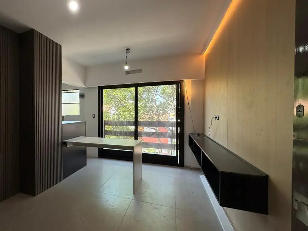 La unidad cuenta con instalaciones de luz, agua y gas totalmente nuevas, artefactos de iluminación y amoblamiento a estrenar.