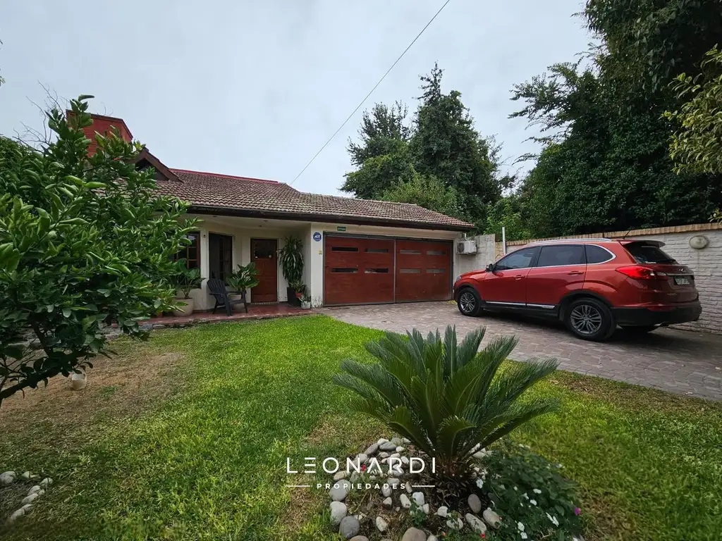 Quincho. Patio con parrilla techada y jardín con pileta con bomba y filtro.
