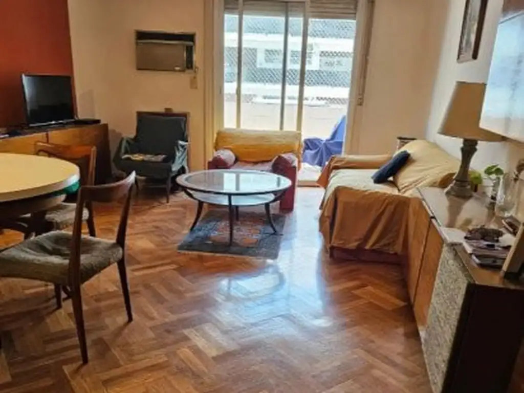 Se trata de un departamento al frente, cuenta con hall de entrada, amplio living comedor, pisos de madera originales, balcon aterrazado con vista abierta al frente, gran cocina con comedor diario y lavadero, dos dormitorios con amplias medidas, placards, dependencia de servicio con toilette, espacio tipo baulera. baño completo.