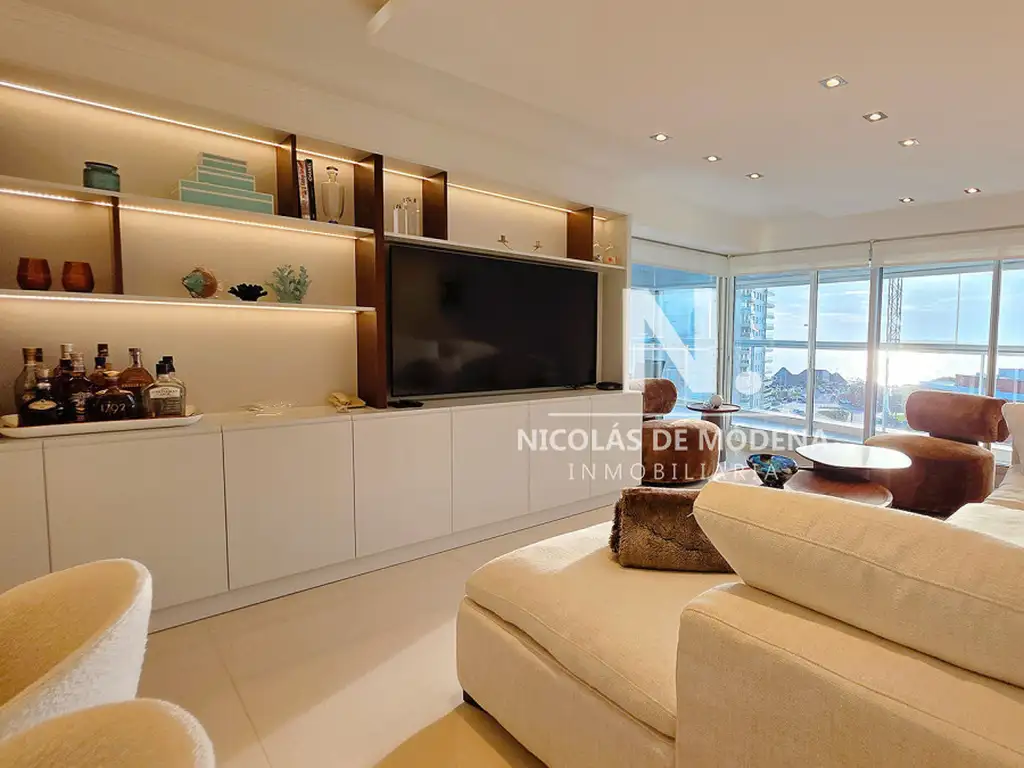 El edificio ofrece excelentes amenities: gran gimnasio totalmente equipado, spa con vista panorámica, piscinas interior y exterior, play room, microcine, barbacoa, cancha, servicio de mucama, servicio de playa.