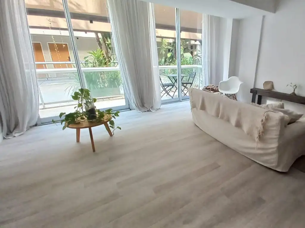 el departamento es divisible como 2 ambientes, y tiene acceso a un balcon terraza que separa ambos cuerpos, con una vista abierta, un concepto diferente a lo usual.