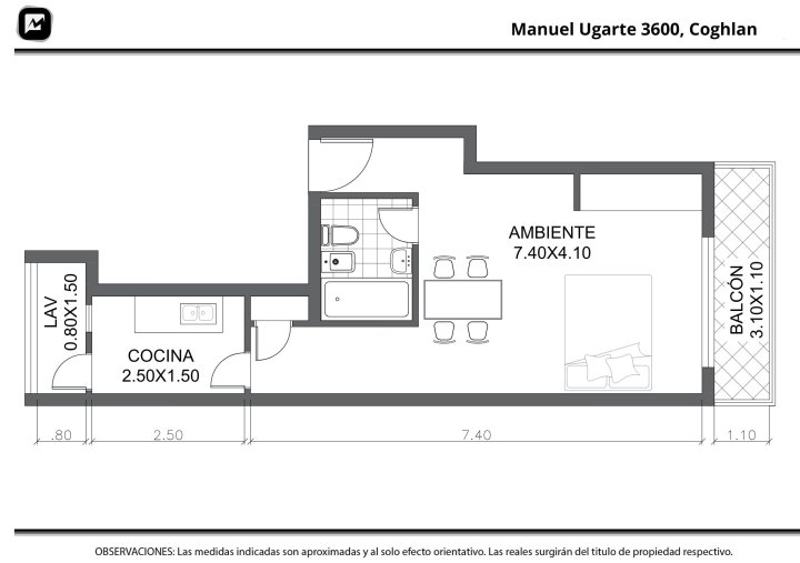 Dpto. Monoambiente con balcón. Cocina separada. Coghlan