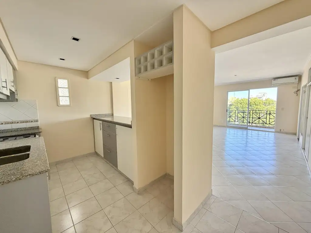 - Cocina Integrada mediante barra equipada con muebles sobre y bajo mesada. Conexión para Lavarropas.