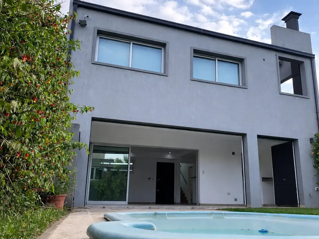 En la planta baja: amplio living comedor de 36 m2, con cocina semiintegrada con alta barra desayunadora con muebles sobre y bajo mesada, extractor de aire, cocina Orbis de 4 hornallas y extractor de aire y toilette compartimentado. El living comedor tiene grandes ventanales a la galería cubierta de 19 m2 con parrilla y salida al jardín con pileta con filtro Vulcano y bomba autocebante Fluvial.