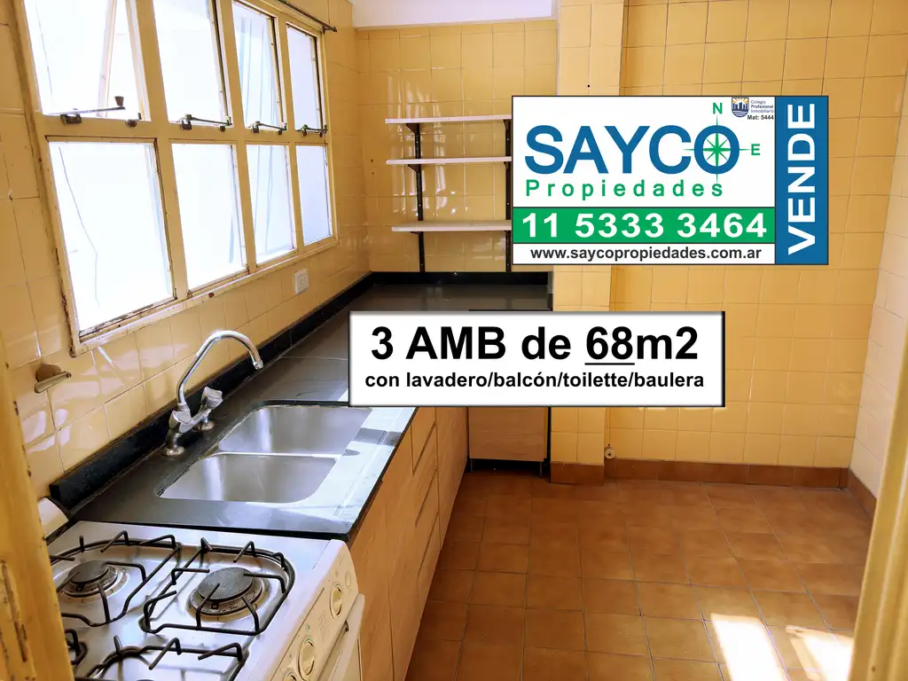 Apto Crédito hipotecario Venta 3 amb c/ lavadero, baño, toilette, balcón y baulera.