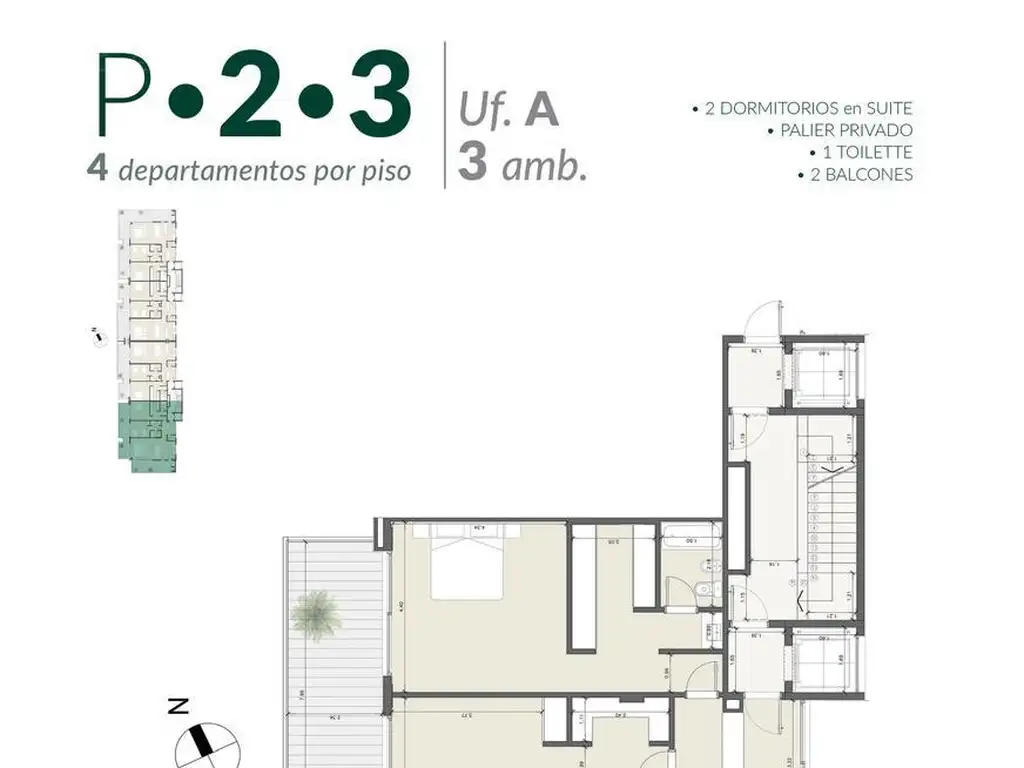 Venta exclusivo 3 ambientes, 2 dormitorios en Suite, 2 balcones, Torre Esmeralda, Puerto Escondido