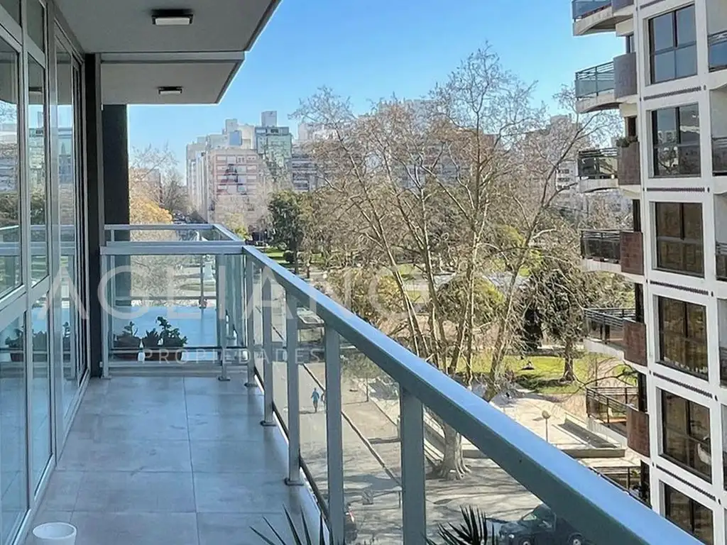 La unidad se dispone al frente y cuenta con un amplio living comedor con balcón corrido y vista lateral a la plaza, lo que brinda muy buena luminosidad y ventilación natural.