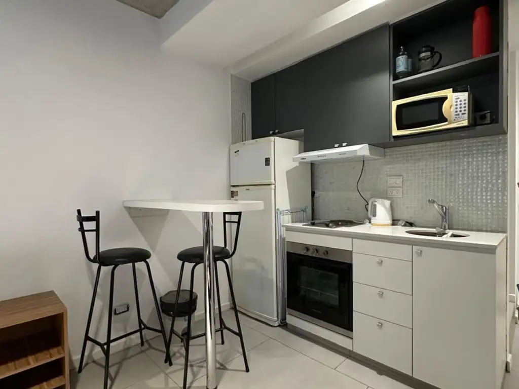 El monoambiente esta muy bien equipado y amoblado, ideal para una sola persona o pareja, es un primer piso, luminoso con baño completo.