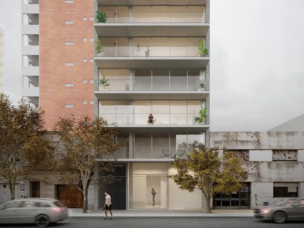 El edificio se compone de planta baja y 6 pisos. Cuenta con 6 unidades de cocheras distribuidas en subsuelo y planta baja. En los pisos 1 a 3 se ubican departamentos semipiso de 1 y 2 dormitorios, mientras que del piso 4 al 6 se encuentran unidades exclusivas de 3 dormitorios. Amenities: terraza de uso común con parrillero y solárium, terraza exclusiva con parrillero correspondiente al piso 6.