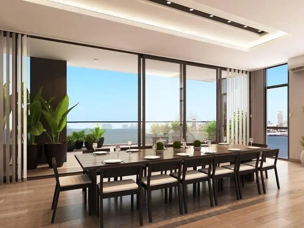 Living comedor con grandes ventanales y vista plena al mar