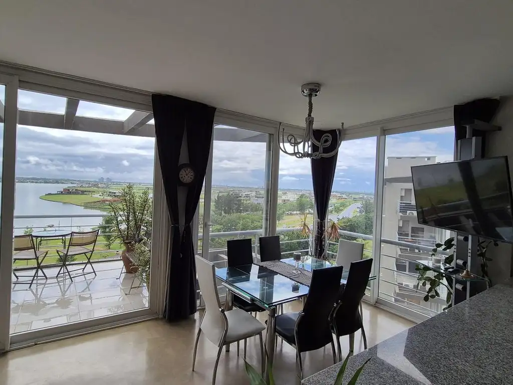 Amplio y luminoso 3 ambientes con vistas abiertas a la laguna central de Nordelta, con balcón y terraza en la segunda planta, 2 cocheras y baulera