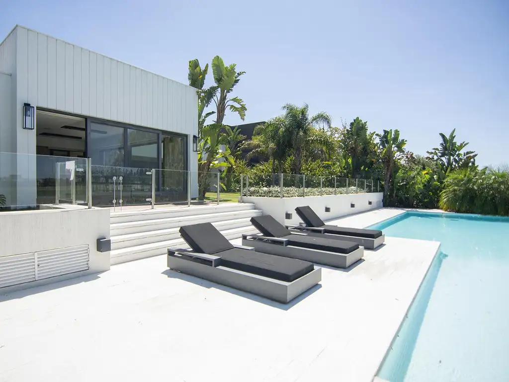 PB ; HALL DE INGRESO - TOILETTE - CINE - ESCRITORIO - AMPLIO LIVING COMEDOR CON SALIDA A GALERIA - COCINA CON MUEBLES SOBRE Y BAJO MESADA - COMEDOR DIARIO - LAVADERO INDEPENDIENTE - DESPENSA CON FREEZER - DEPENDENCIA O CUARTO DE HUESPEDES - QUINCHO O PLAYROOM CON ESPACIO PARA TV, PARRILLA , BAñO, Y COMEDOR - COCHERA CUBIERTA PARA DOS AUTOS - PLIETA CLIMATIZADA CON SOLARIUM - AMPLIA VISTA AL GOLF Y LA LAGUNA - MUELLE