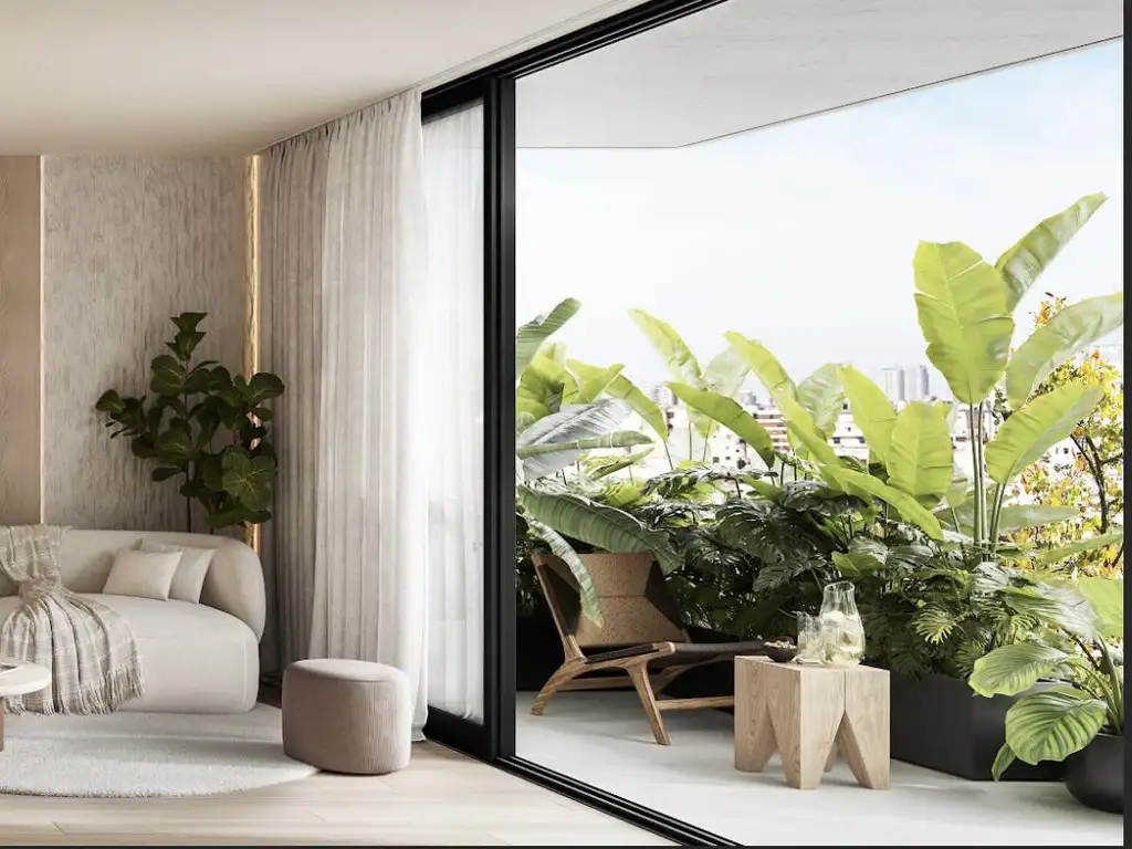 El Espacio: Monoambiente luminoso con terminaciones de alta gama, pisos SPC o porcellanato y amplios ventanales con vidrios DVH para un máximo aislamiento acústico y térmico.