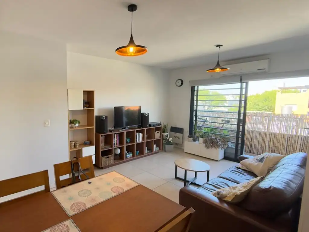 En el primer piso se ubica el dormitorio principal, y un segundo dormitorio, ambos comparten baño completo, y el acceso a la terraza de uso exclusivo, con techo corredizo automatizado, permitiendo aprovechar el espacio todo el año. El espacio aéreo es propio, con múltiples posibilidades de ambientación (jardín, parrilla, sector relax, etc.).