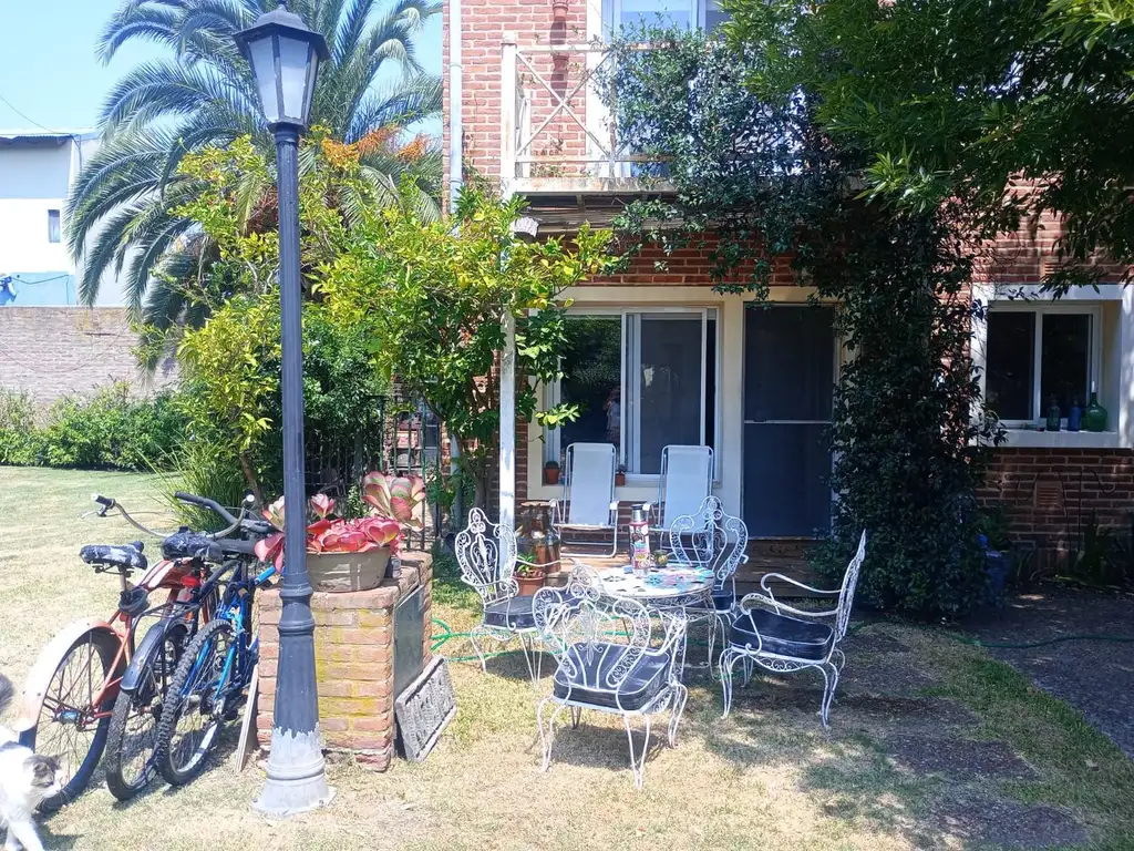 Quincho con parrilla cubierta, la casa está ubicada junto a la plaza del barrio dando un entorno verde integrándose a la casa.