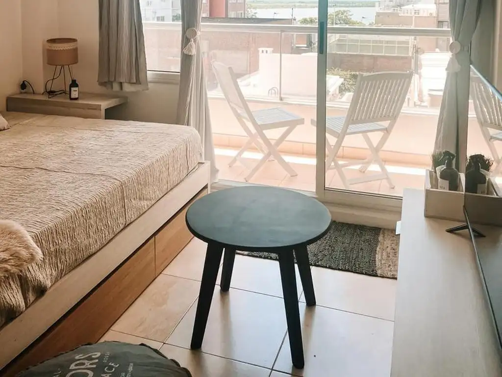 Luminoso monoambiente totalmente amoblado, con balcón y hermosa vista abierta al río.