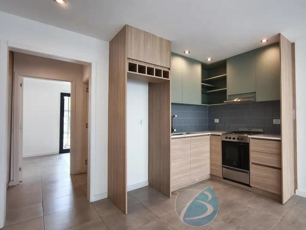 Cocina integrada con espacio para lavarropas. Baño completo con ducha.