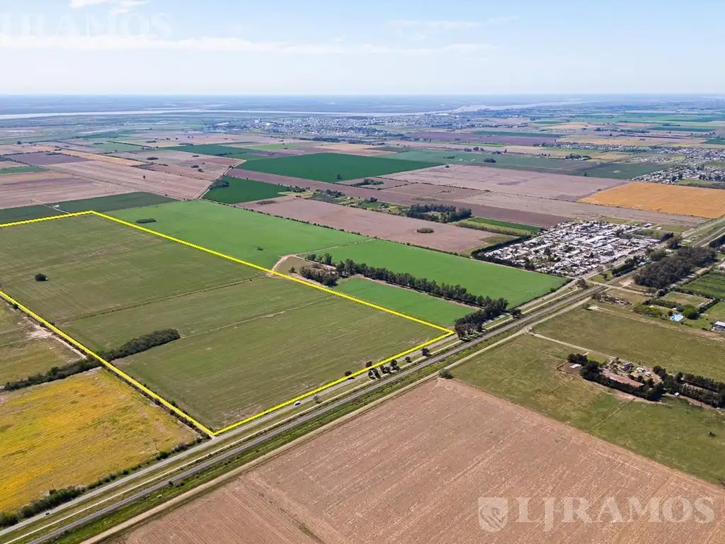 Campo 100% agrícola de primera calidad, sobre asfalto, sin mejoras y próximo a las principales terminales portuarias y autopista Ruta 9. A 35 km de Rosario.