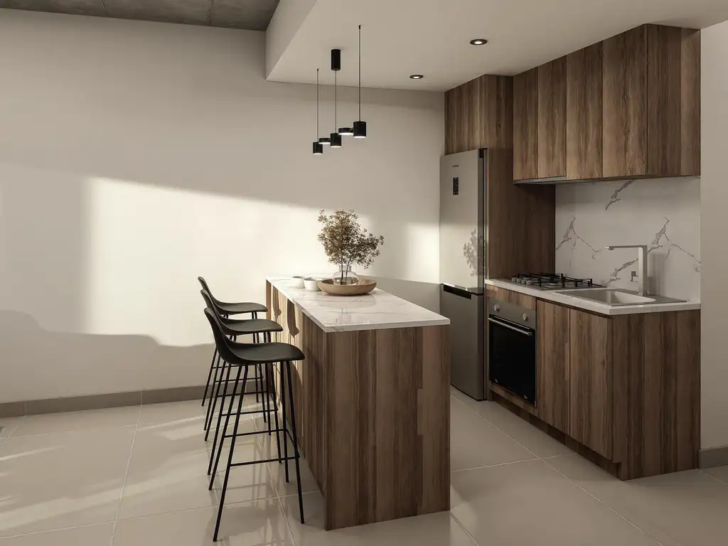 - Cocinas equipadas con anafe a gas y horno empotrable eléctrico y campana extractora empotrable.