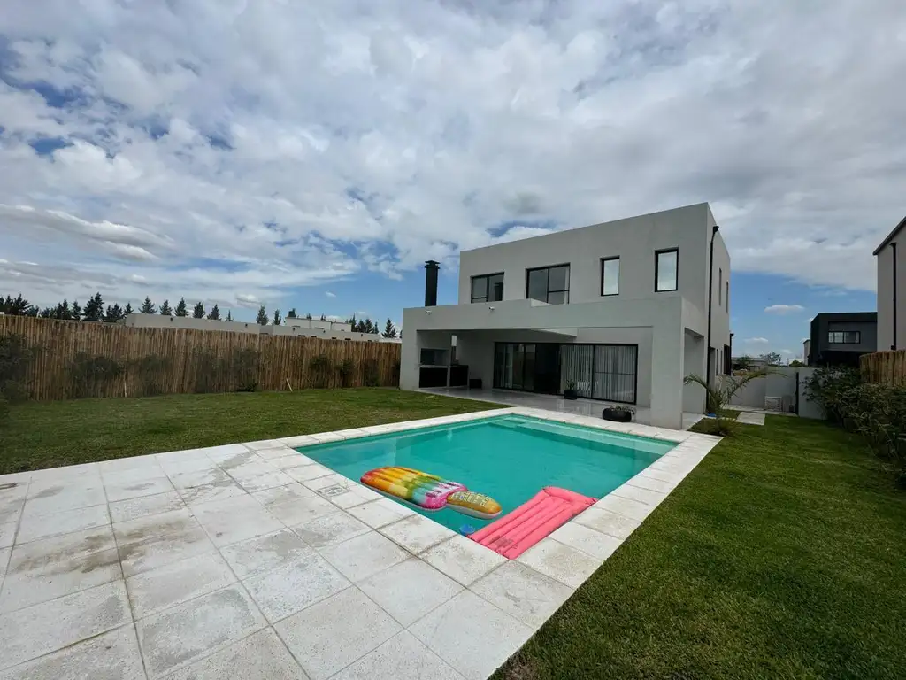 En el exterior se encuentra un jardín parquizado, pileta, galería con parrilla y cochera para cuatro autos. El barrio cuenta con seguridad es un barrio náutico.