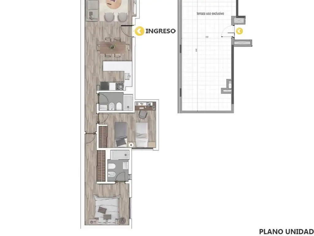 - 61 m² Cubierta
