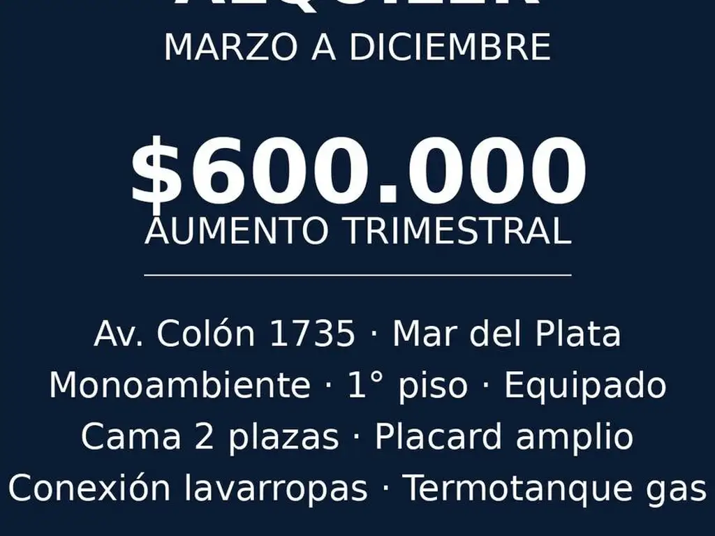 Valor mensual del alquiler $600.000, aumento trimestral del ICL.